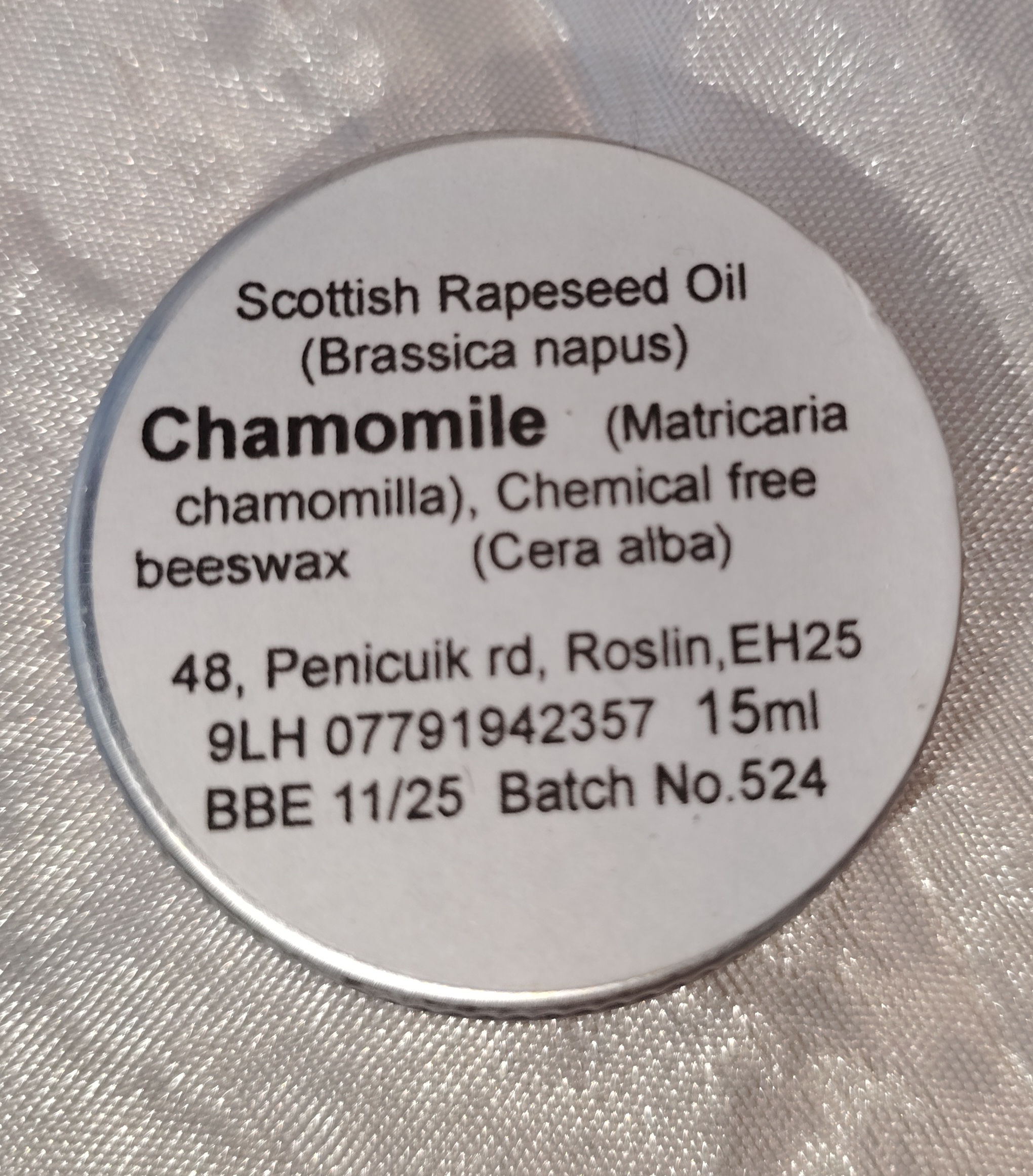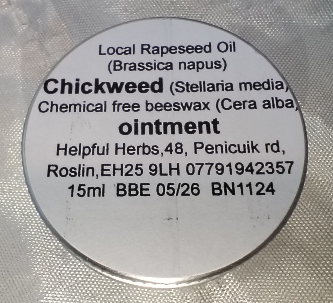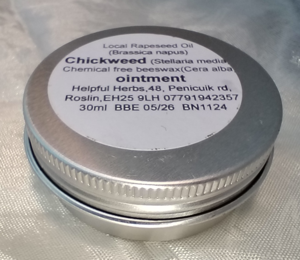 Ingredients: Midlothian Rapeseed Oil, Chickweed, Beeswax (Prunus dulcis, Stellaria media, Cera Alba).